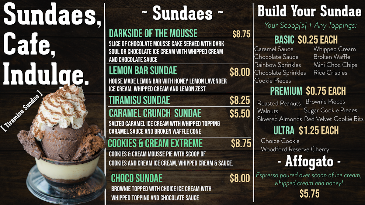 The menu at Urban Churn Craft Ice Cream and Desserts in Carlisle offers a delightful selection of indulgent treats. For sundae lovers, options like Darkside of the Mousse, Lemon Bar Sundae, and Tiramisu Sundae stand out, each brimming with rich flavors. The Caramel Crunch Sundae and Choco Sundae bring a satisfying balance of sweetness and texture, while the Coconut Cream based options, including Java Crumble and refreshing sorbets like Strawberry Sorbet, Lime Sorbet, and Watermelon Sorbet, cater to a variety of tastes. For something truly unique, try the Banana Foster, Mango Sticky Rice, or Lemon Meringue for a tropical twist, or go for the playful Blue Razz Cotton Candy. Fans of crunchy desserts can enjoy the Chocolate Chip Cookie Crunch, offering a nostalgic and delicious finish to your visit. The menu is a perfect blend of comforting classics and inventive flavors that will satisfy any sweet tooth.